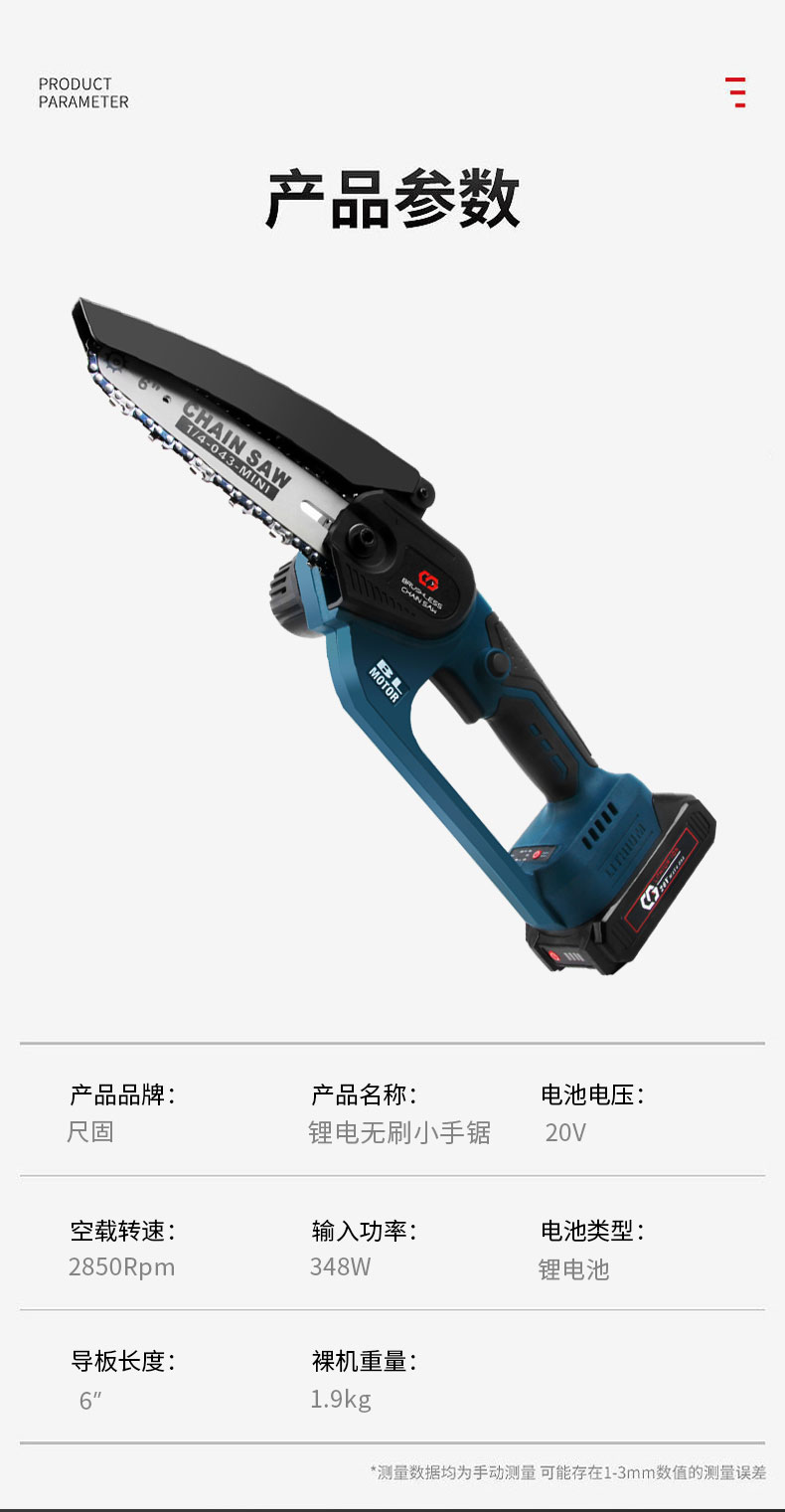 尺固 CG-6620 锂电⽆刷⼩⼿锯 充电式锂电单手锯 2.0Ah两电一充