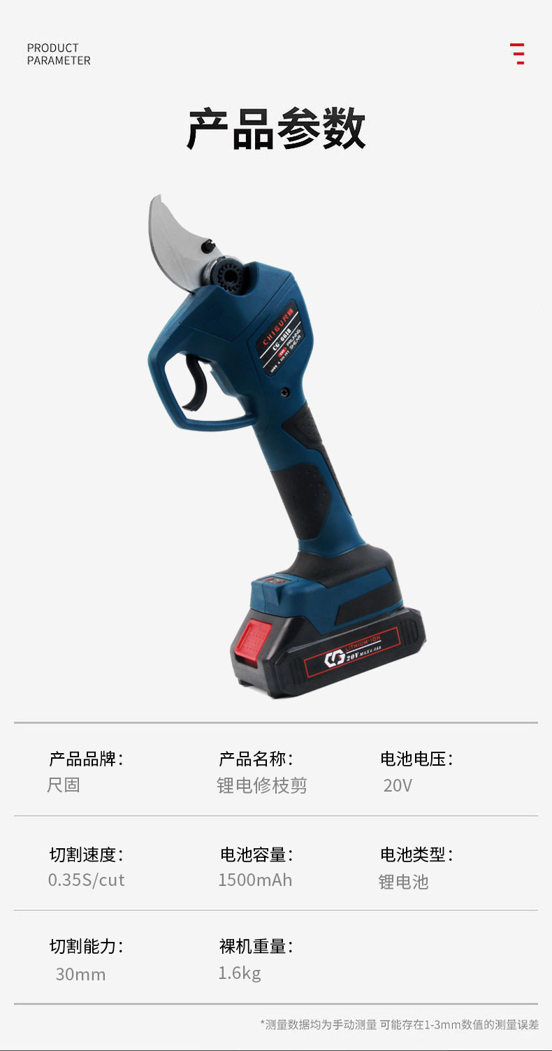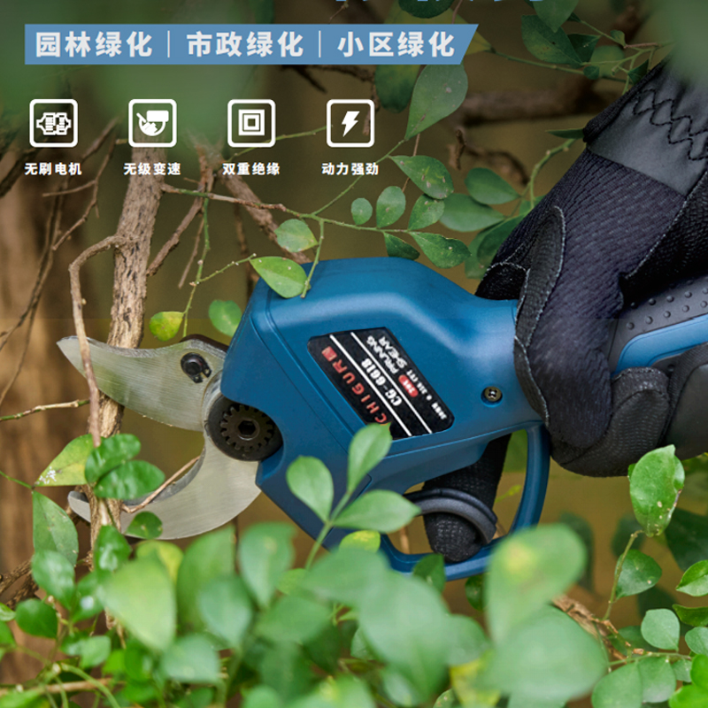 尺固 CG-6618 ⽆刷锂电修枝剪 园林修枝粗枝电剪刀 2.0Ah两电一充